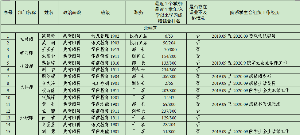 2 | 学生会组织秘书长 | 刘婷 | 是 |