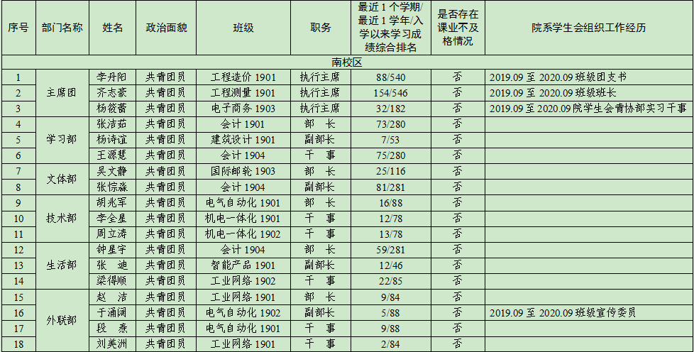 序号 | 类别 | 姓名 | 是否为专职团干 | 备注 |