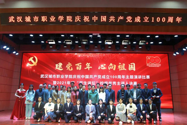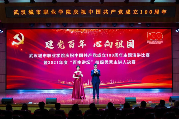 4月15 日下午,武汉城市职业学院纪念中国共产党成立100周年“建党百年·心向祖国”主题演讲比赛暨“百生讲坛”校级优秀主讲人决赛,在北校区艺术楼演播厅举行。学校党委委员、副校长杨爱民出席活动,学校相关部门负责人、各学院党总支书记、学工办主任、分团委书记及广大师生代表观看本次比赛。