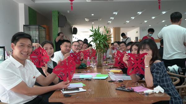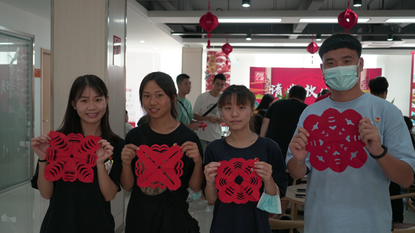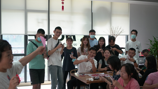 主题团日活动结束后,开展了“清廉·青年”廉洁主题剪纸活动,邀请到武汉民间艺术家协会理事林君带领团学干部,用剪纸的方式庆祝建党100周年,展示了以“建党百年”为主题的剪纸作品,一张张红纸,一剪一画卷,党的先进理念与优秀传统文化交织在一起,团学干部爱党爱国情怀油然而生。